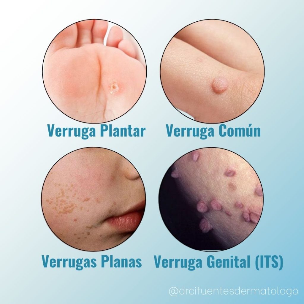 - Verrugas Comunes: Suelen aparecer en las manos y tienen una superficie rugosa. Pueden ser del color de la piel, grisáceas o marrones.